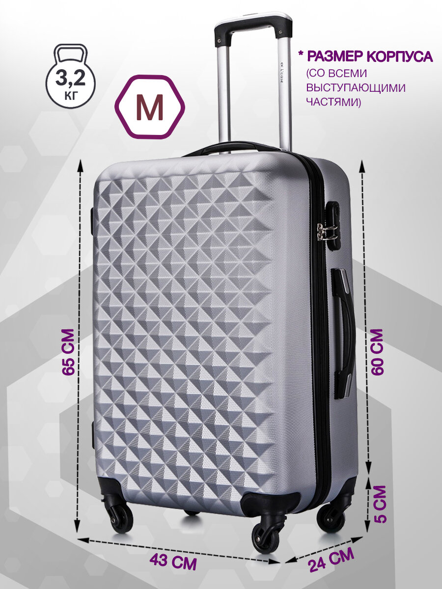 Чемодан на колесах M средний, серый - Чемодан ABS - пластик, семейный Lcase информация: