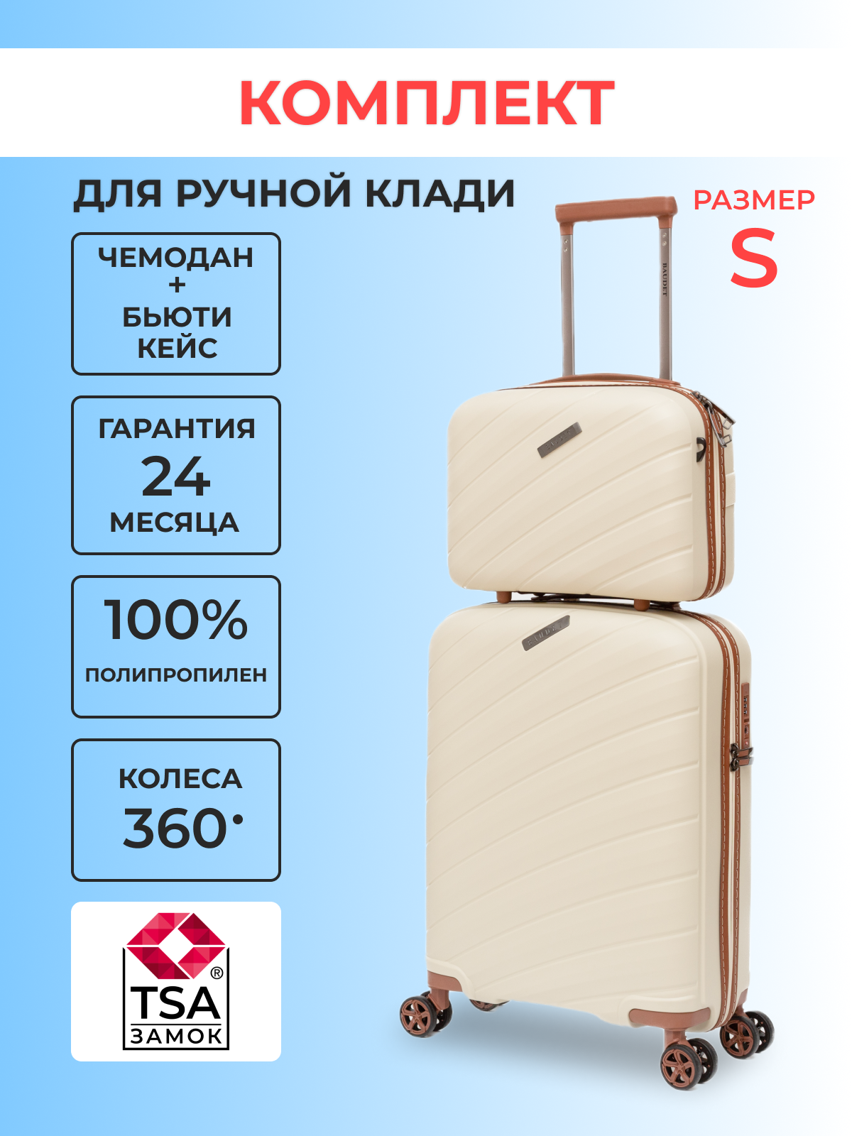 Комплект Baudet чемодан на колесах и бьюти-кейс 821 - 55 см + 34,5 см белый/коричневый информация: