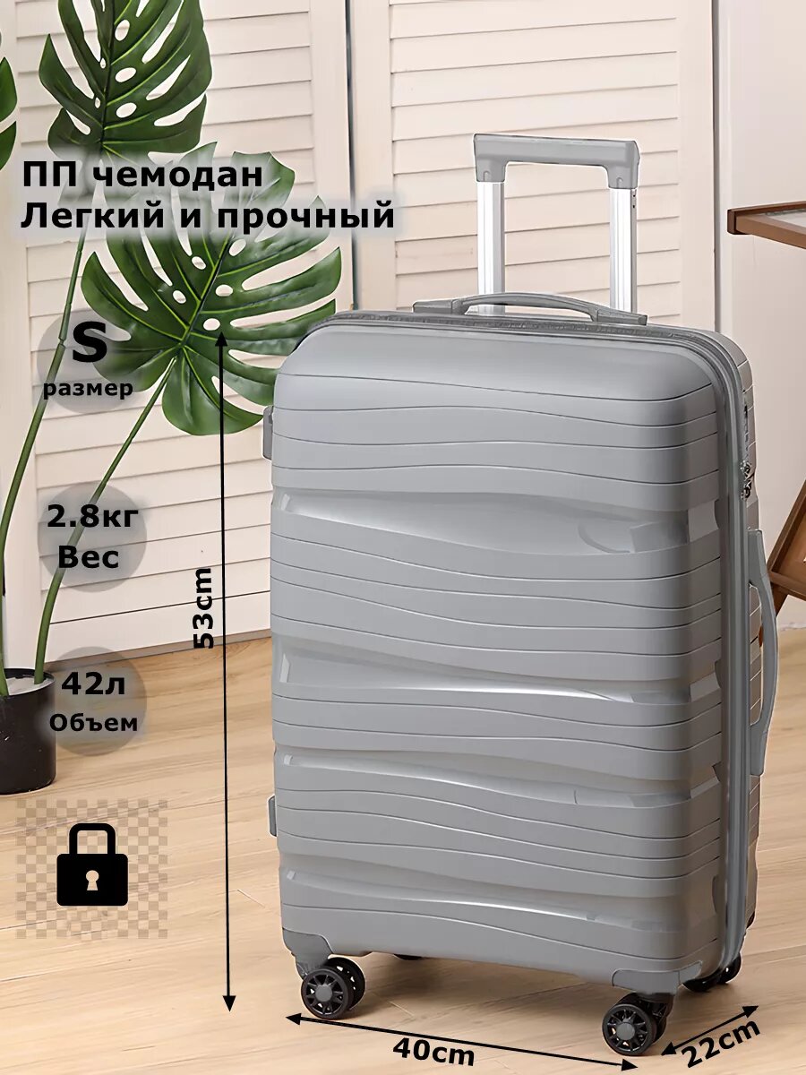 10 цен на чемодан на колесах,Чемодан из полипропилена(размер S)серый