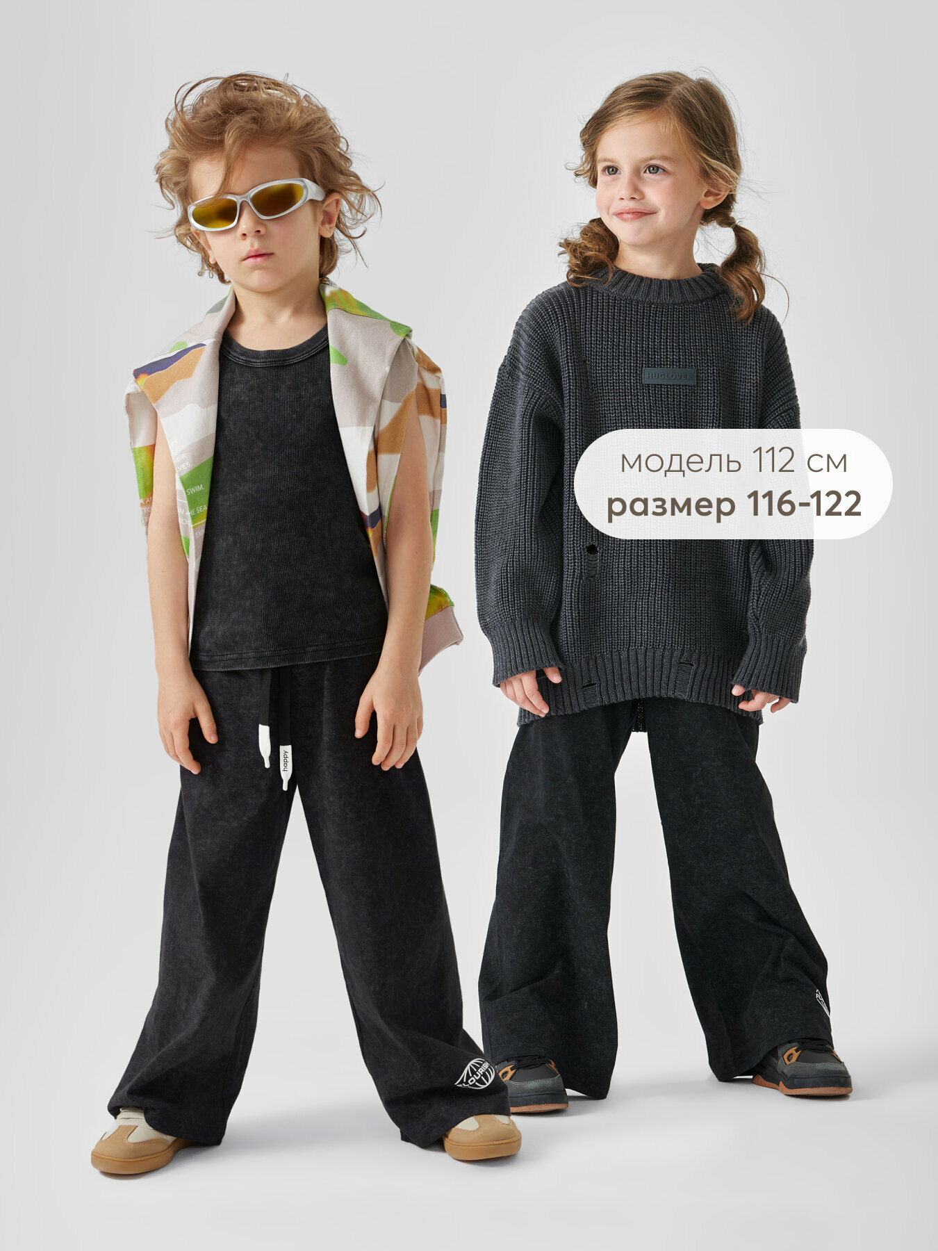 10 цен на 88216, Брюки детские Happy Baby, для мальчиков и девочек, 100% хлопок, на шнурке, черные, рост 128-134
