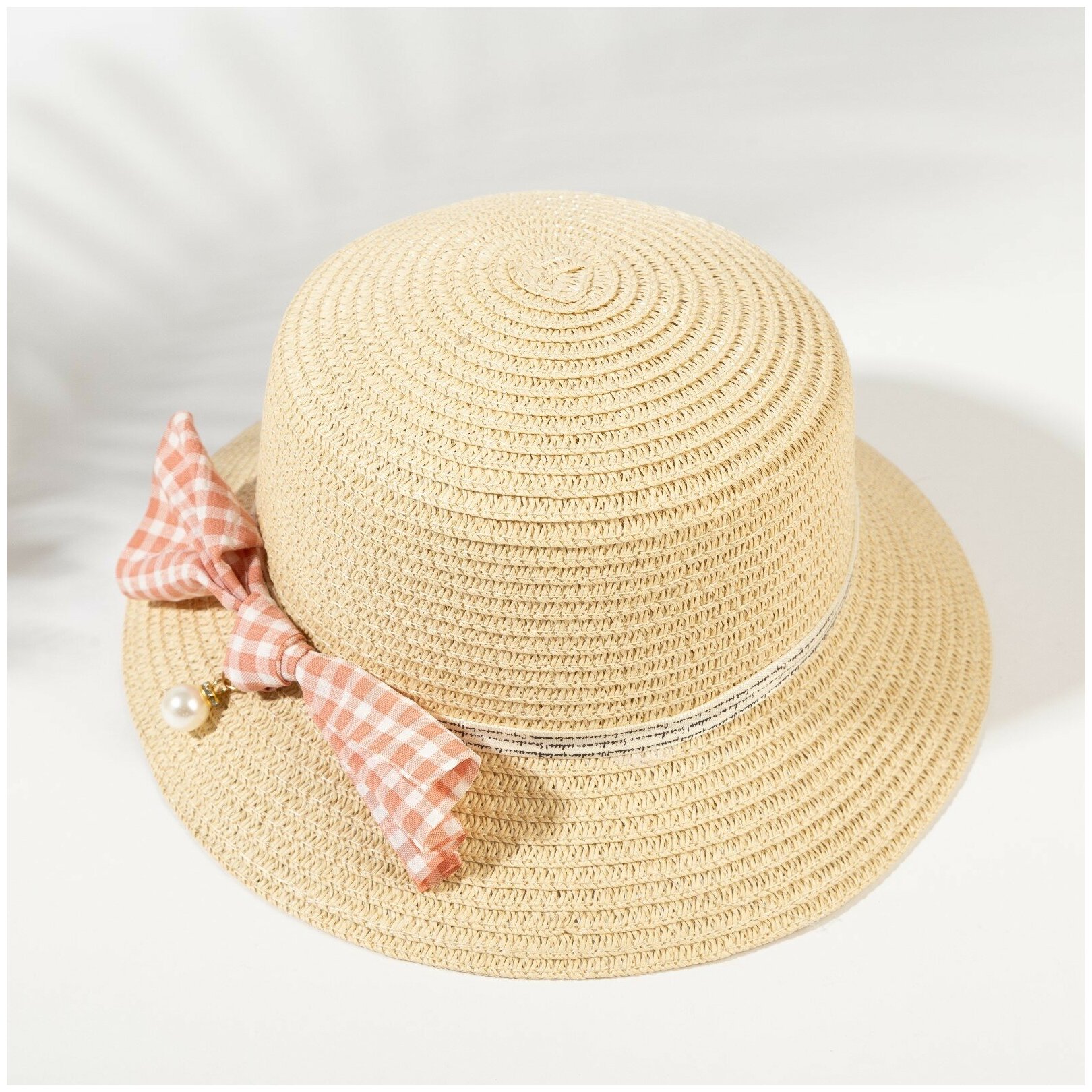 Кепка плетёная для девочки MINAKU цвет бежевый, р-р 50-52