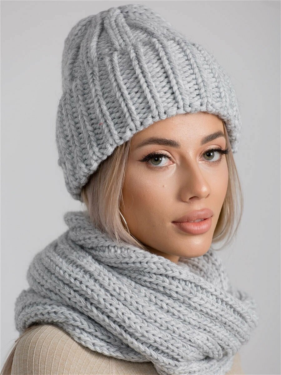 10 цен на Комплект (шапка и снуд) женский, шапка вязаная бини с отворотом, теплый шарф зимний объемный крупной вязки