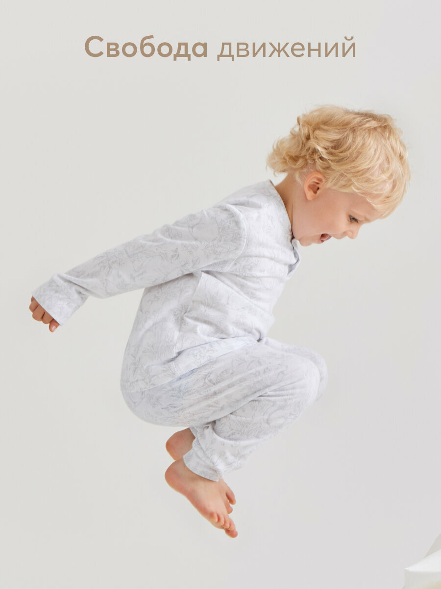 10 цен на 90124, Пижама детская Happy Baby, с резинками на манжетах и штанинах, белая с растительным принтом, рост 116-122