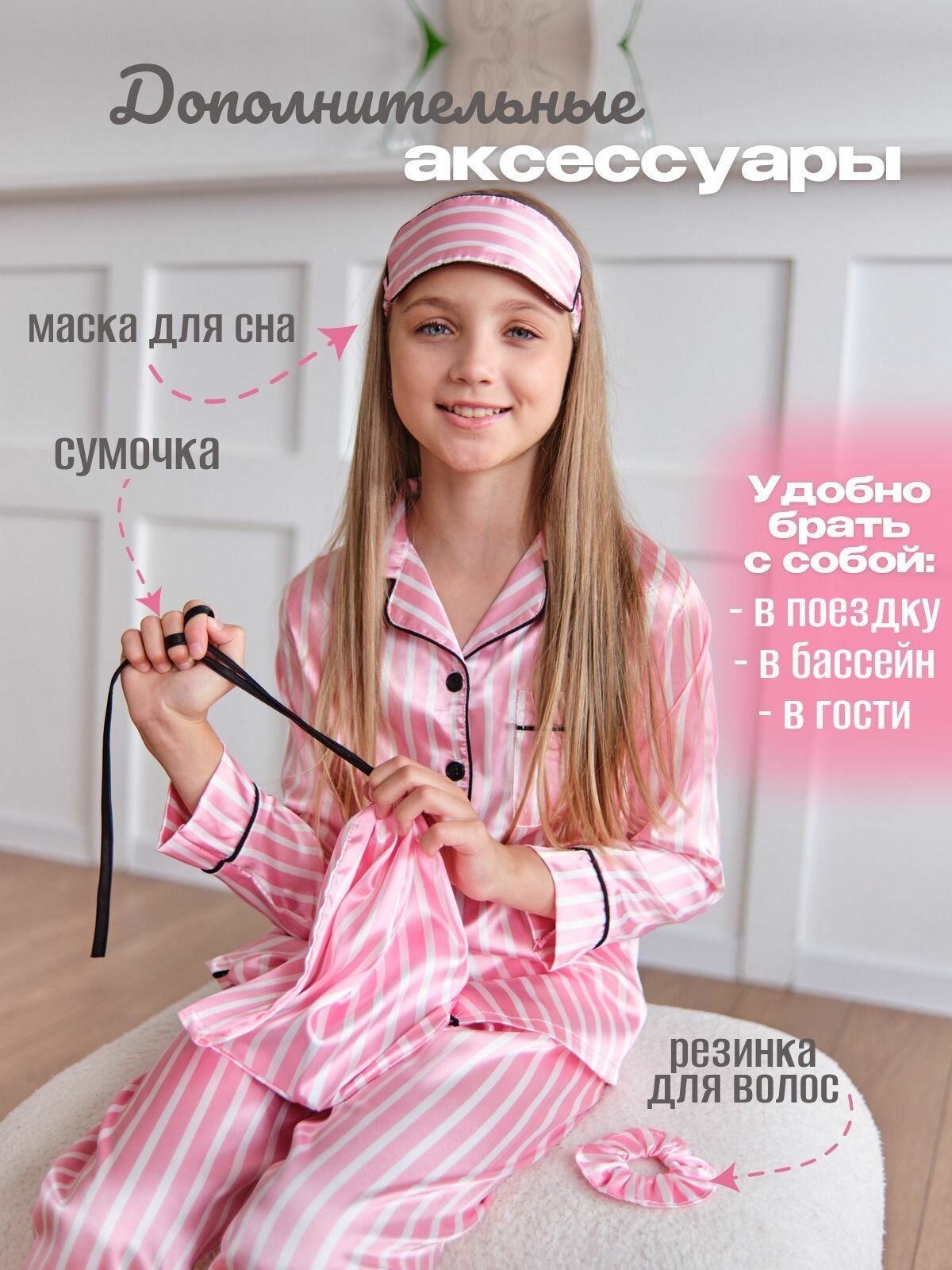 Пижама для девочки детская комплект со штанами с шортами 7 в 1 шелк информация: