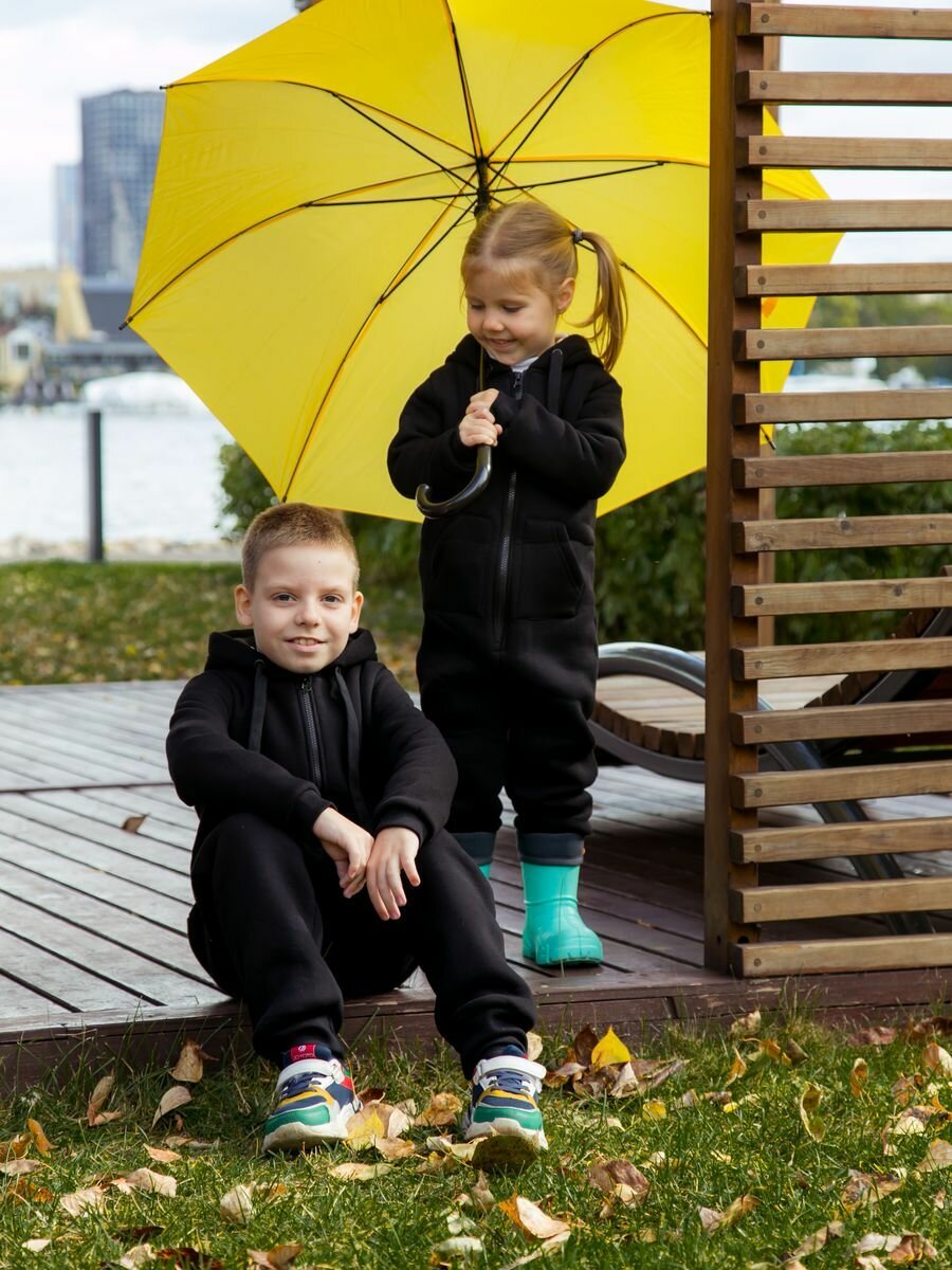 Комбинезон Веселый малыш Утепленный комбинезон футер с начесом , размер 104, черный 2 173 ₽