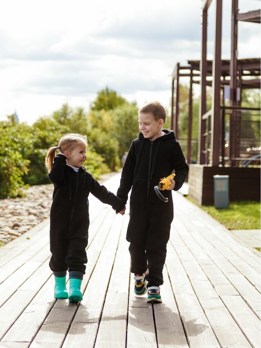 Комбинезон Веселый малыш Утепленный комбинезон футер с начесом , размер 134, черный 2 450 ₽