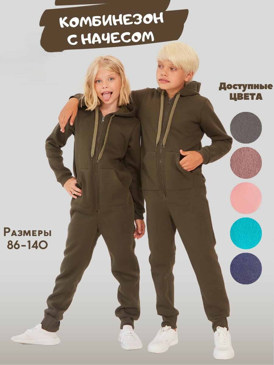 Комбинезон Веселый малыш Утепленный комбинезон футер с начесом , размер 134, Хаки 2 450 ₽
