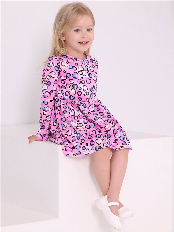 Платье для девочки в садик нарядное с длинным рукавом Апрель 1ДПД4398001н/ розовый,мультиколор 92-50 информация: