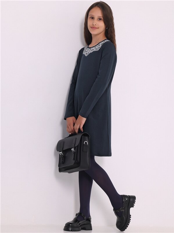 Платье для девочки школьное синее трикотажное футер Апрель 1ДПД4503258н/989/*/4062/*/*/*/* серый,синий,белый 76-146 1 428 ₽