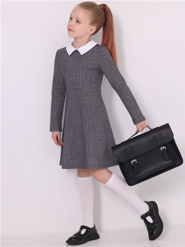10 цен на Платье для девочки школьное синее трикотажное футер Апрель 1ДПД4503258н/989/*/4062/*/*/*/* серый,синий,белый 72-140