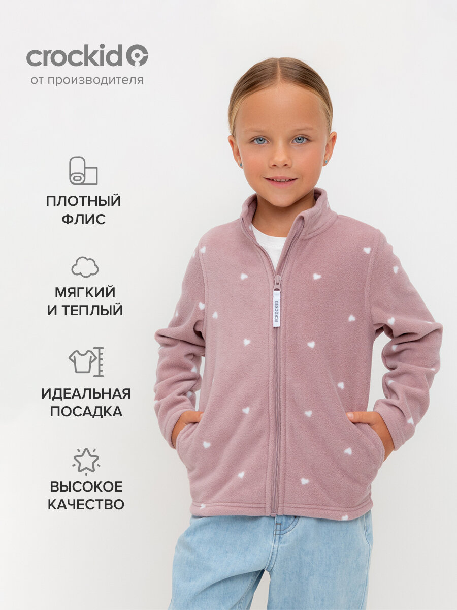 Флисовая куртка с воротником для девочки, Crockid ФЛ 34025/амарант,сердечки р 64/122 1 619 ₽