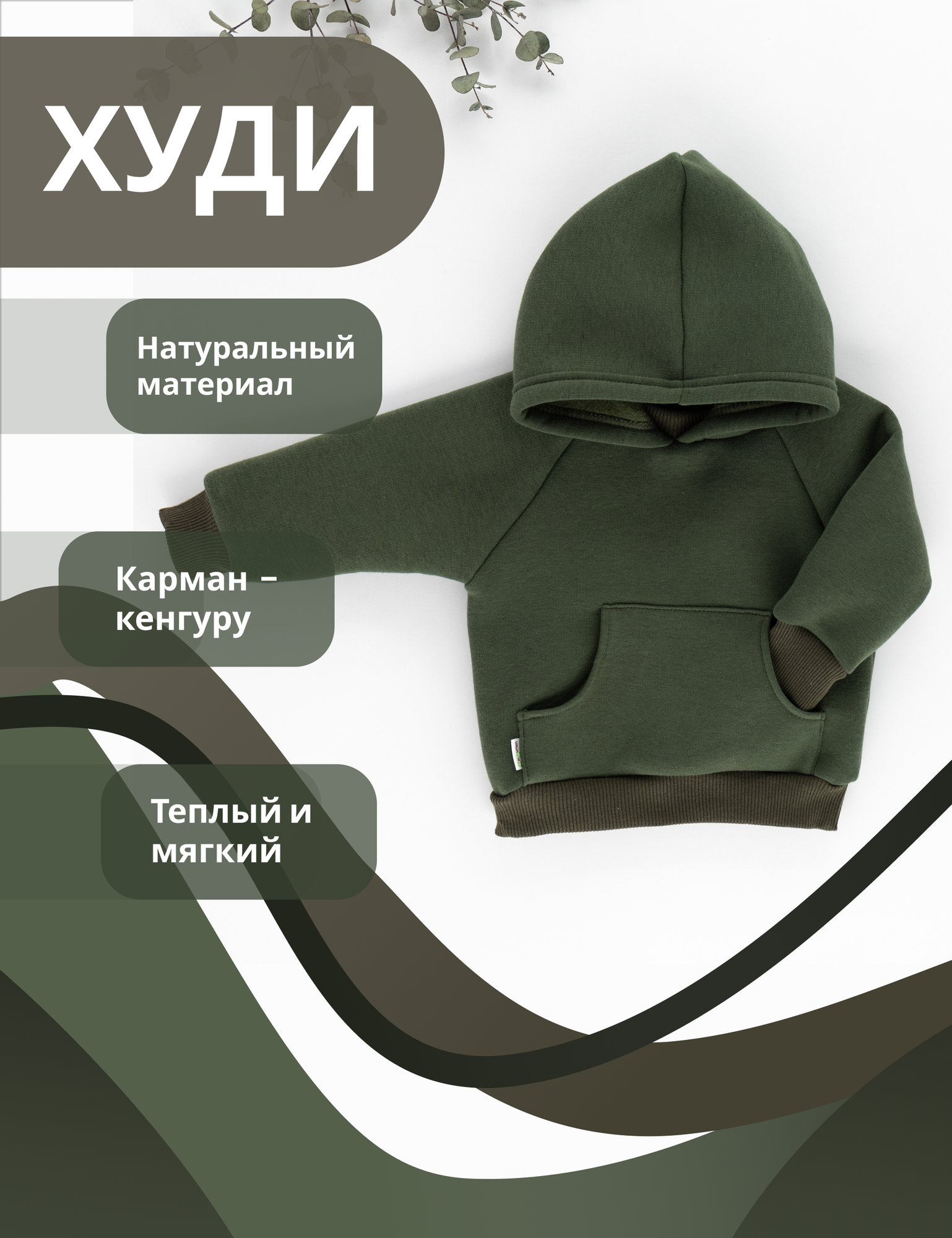 Худи с капюшоном/ толстовка худи/ детское худи/ свитшот худи/ Снолики, футер с начесом, темно-зеленый р-р 86 информация: