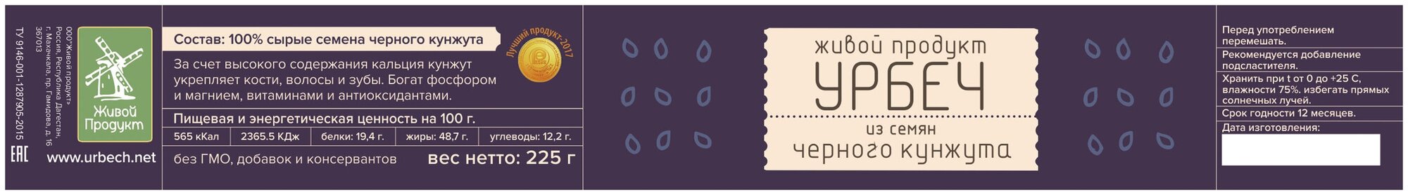 Урбеч из семян чёрного кунжута Живой продукт 225 г информация: