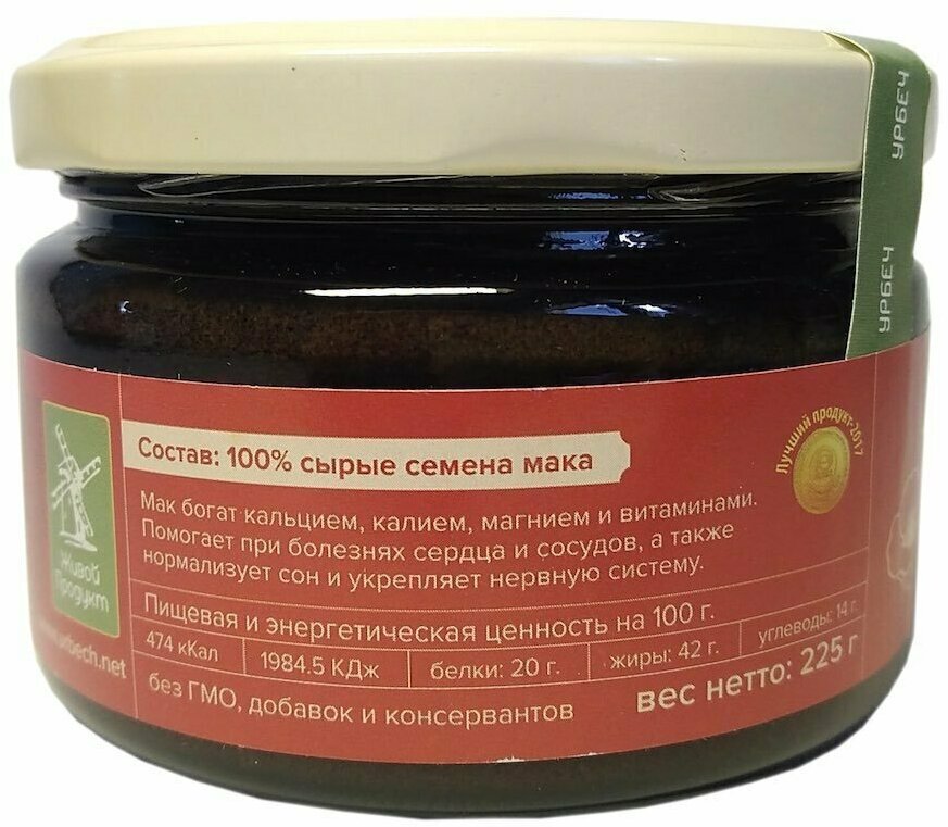 Урбеч Живой Продукт из семян мака, 225 г информация: