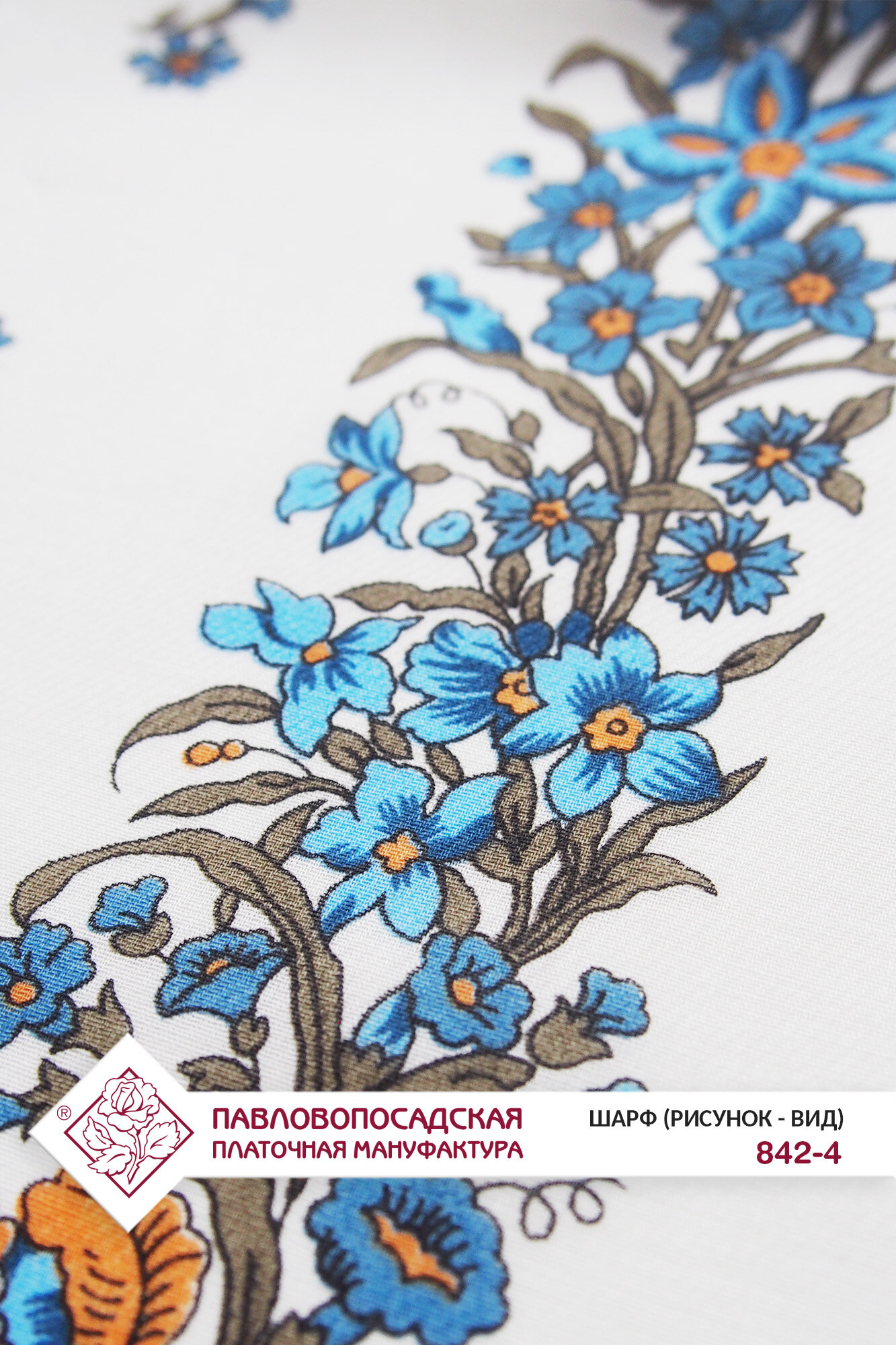 Платок из хлопка (саржа) Павловопосадские платки 842 Ирис 4, белый, 72 х 72 см информация:
