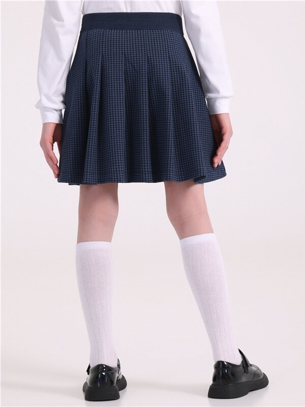 10 цен на Юбка школьная синяя трикотажная костюмный жаккард Апрель 1ДЮК4420176/989/*/5303/*/*/*/* черный,синий 62-122