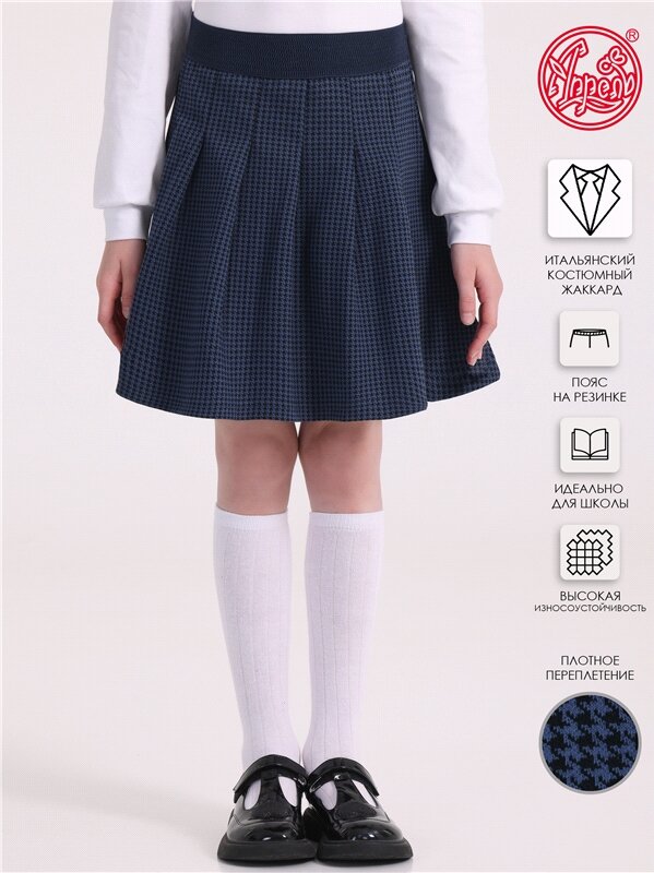 10 цен на Юбка школьная синяя трикотажная костюмный жаккард Апрель 1ДЮК4420176/989/*/5303/*/*/*/* черный,синий 76-146