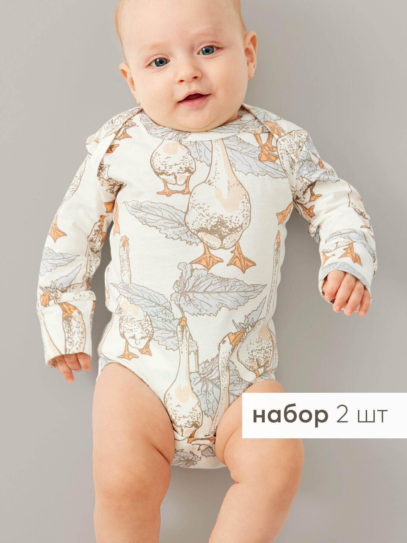 90096, Боди для новорожденных Happy Baby, боди с длинным рукавом для мальчика и девочки, песочник для малышей, набор 2 шт., молочное и белое с гусями, рост 80 1 699 ₽