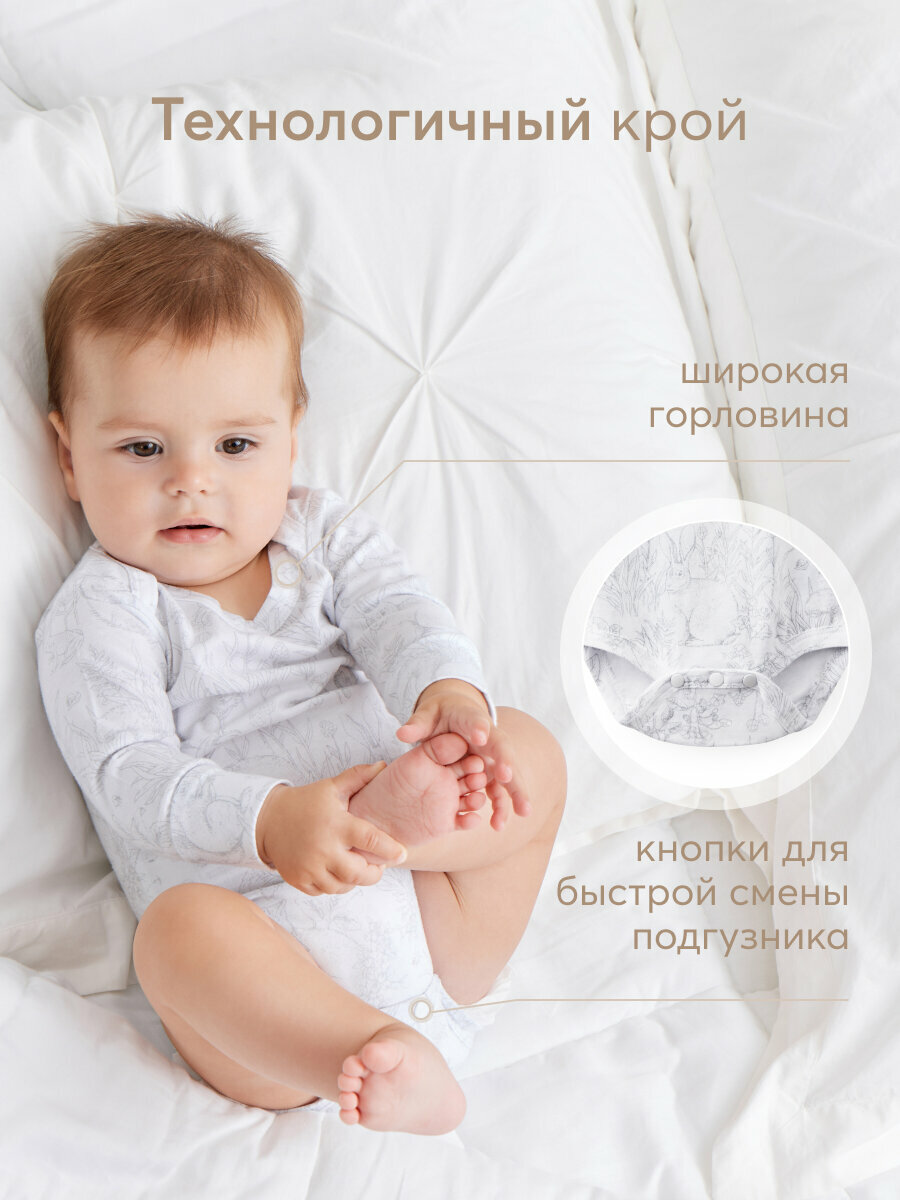 90096, Боди для новорожденных Happy Baby, боди с длинным рукавом для мальчика и девочки, песочник для малышей, набор 2 шт., молочное и белое с мишками, рост 56 1 699 ₽