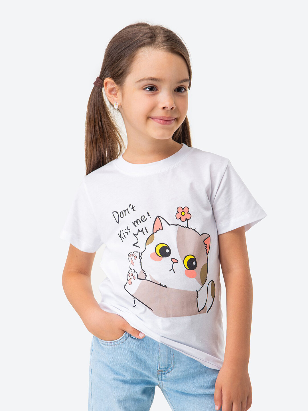 10 цен на Детская футболка с принтом для девочки для мальчика хлопок HappyFox, HF00123 размер 104, цвет белый.котик