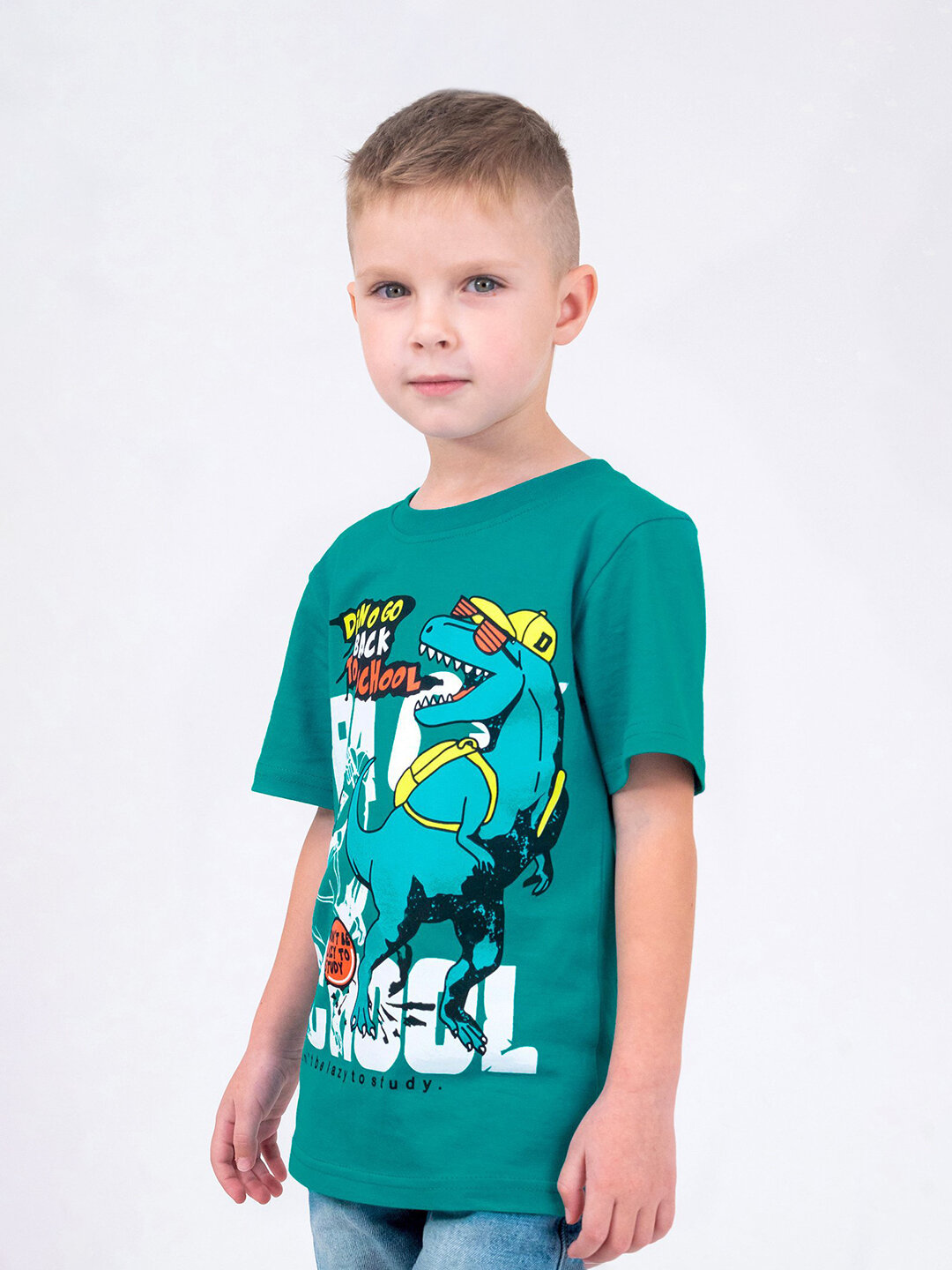 10 цен на Детская футболка с принтом для девочки для мальчика хлопок HappyFox, HF00123 размер 128, цвет бирюзовый.динозавр