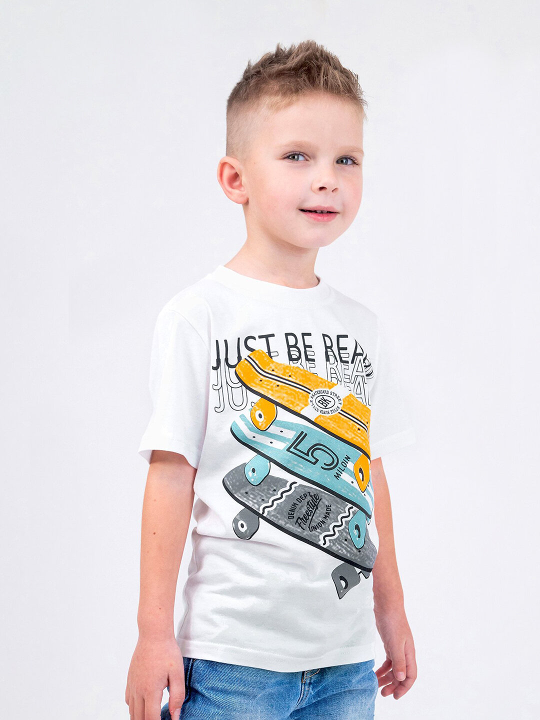 Детская футболка с принтом для девочки для мальчика хлопок HappyFox, HF00123 размер 110, цвет белый.скейты 450 ₽