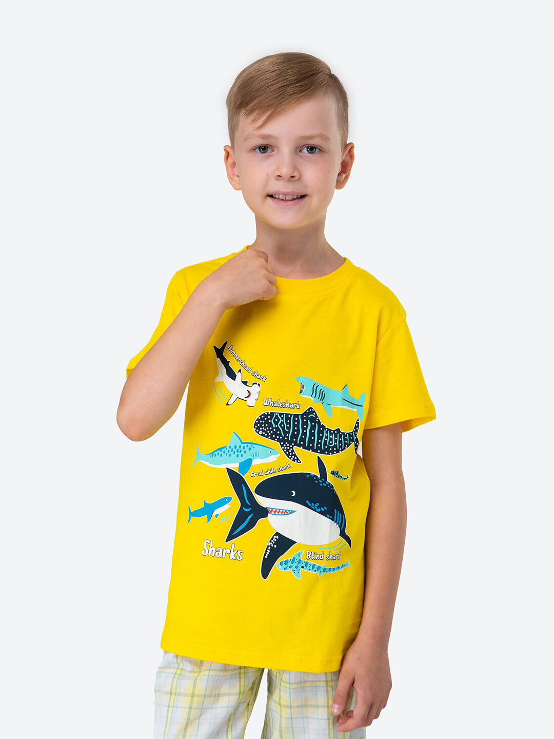 10 цен на Детская футболка с принтом для девочки для мальчика хлопок HappyFox, HF00123 размер 104, цвет желтый.акулы