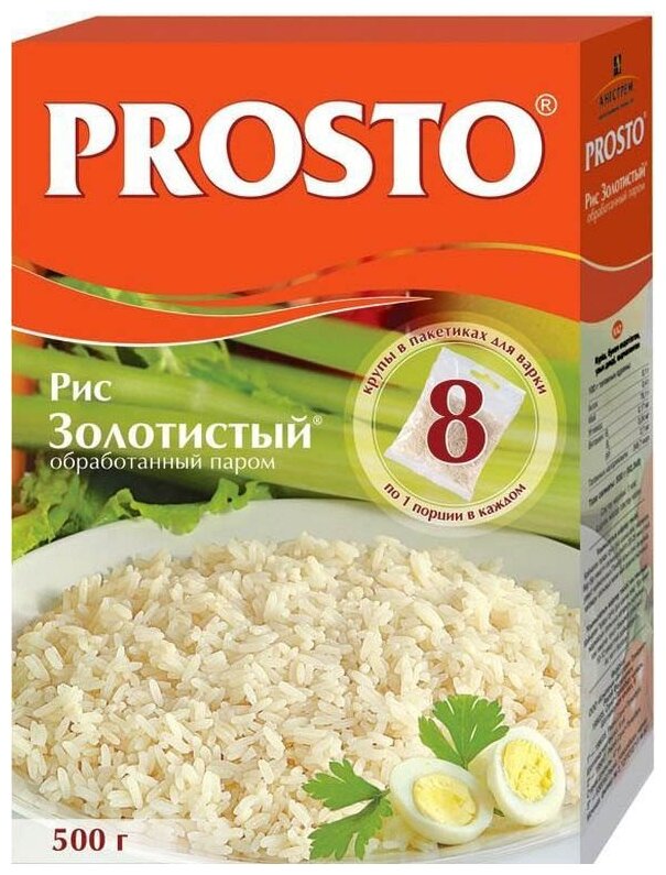 10 цен на Рис Prosto длиннозерный пропаренный золотистый, 8 пакетиков по 62,5 г