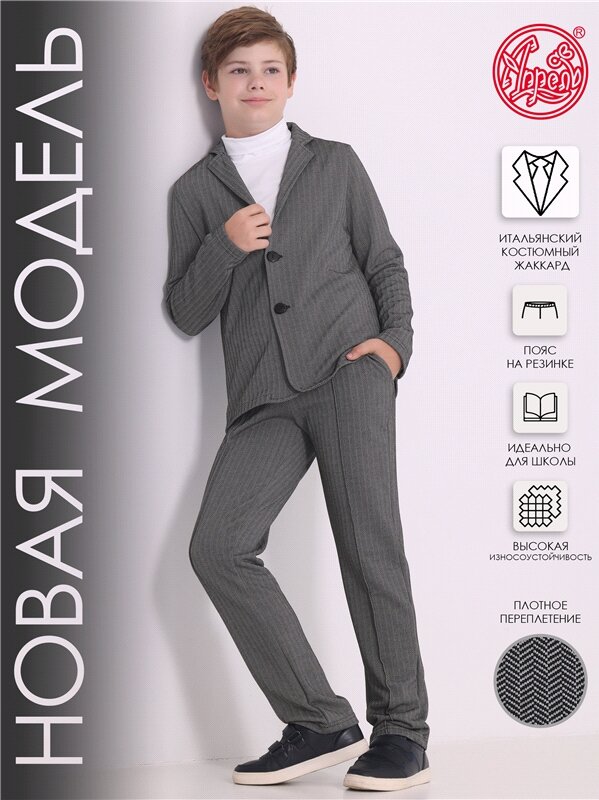 10 цен на Костюм для мальчика школьный брюки и пиджак жаккард Апрель 2ПДБ5710176/982/*/3189/*/*/*/* черный,серый 64-128