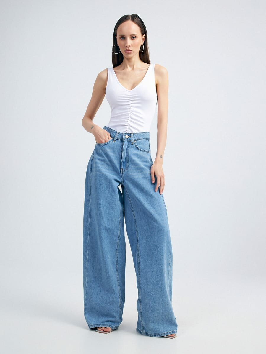 Боди майка с защипами и глубоким вырезом бедра твое, арт. 97945,черный,XS 350 ₽