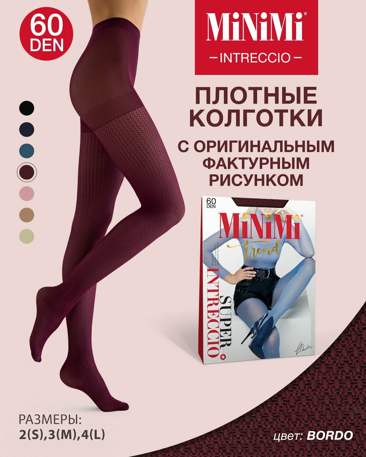 Колготки женские Minimi Mini INTRECCIO 60 Bordo 2 информация: