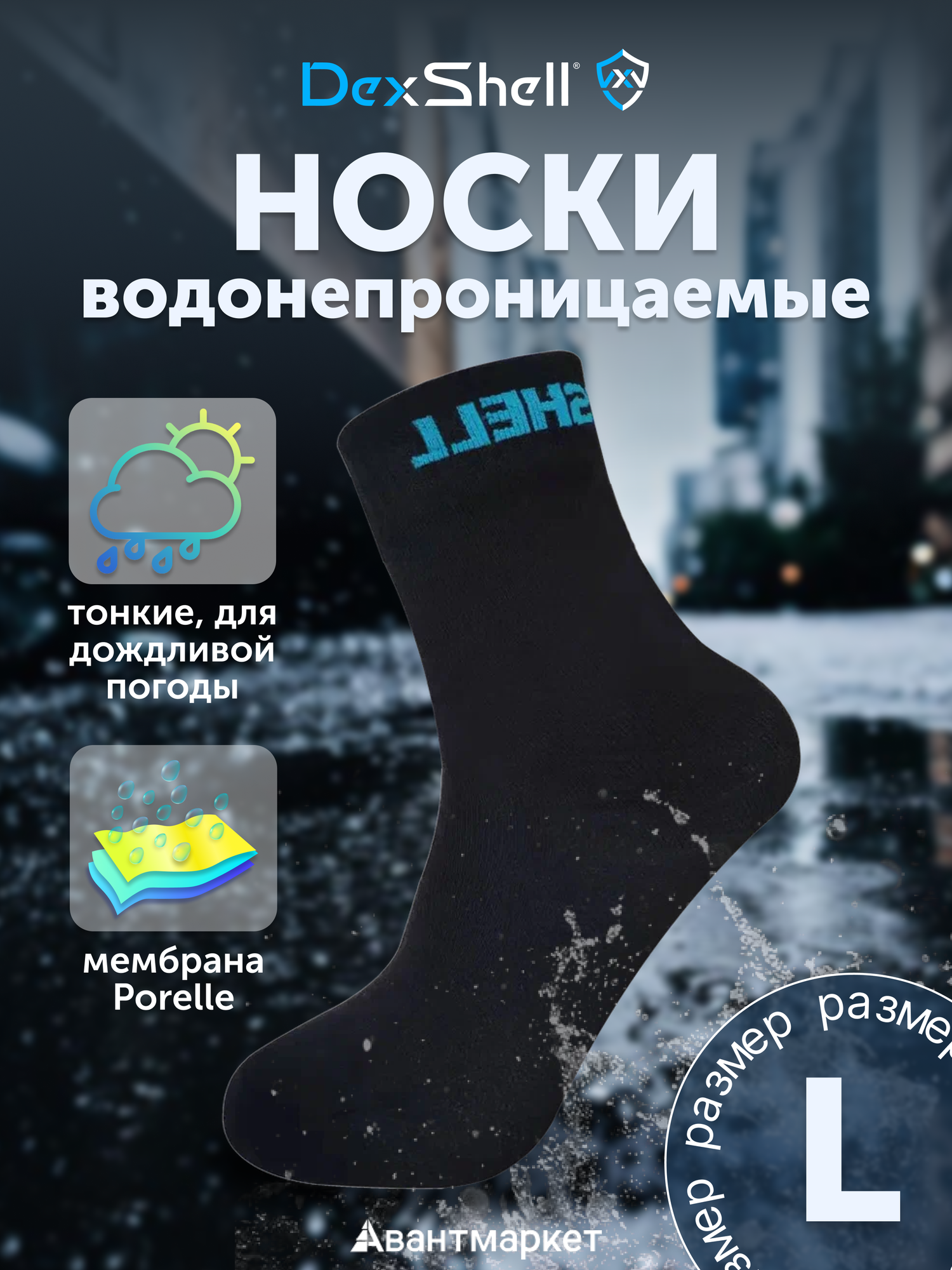 Отзывы на Водонепроницаемые носки DexShell Ultra Thin Crew L (43-46), черный/голубой, DS683BLKL