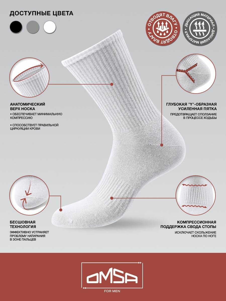 10 цен на Носки мужские OMSA ACTIVE 116 высокие с широкой резинкой Bianco 36-38 (спайка 3 шт.)
