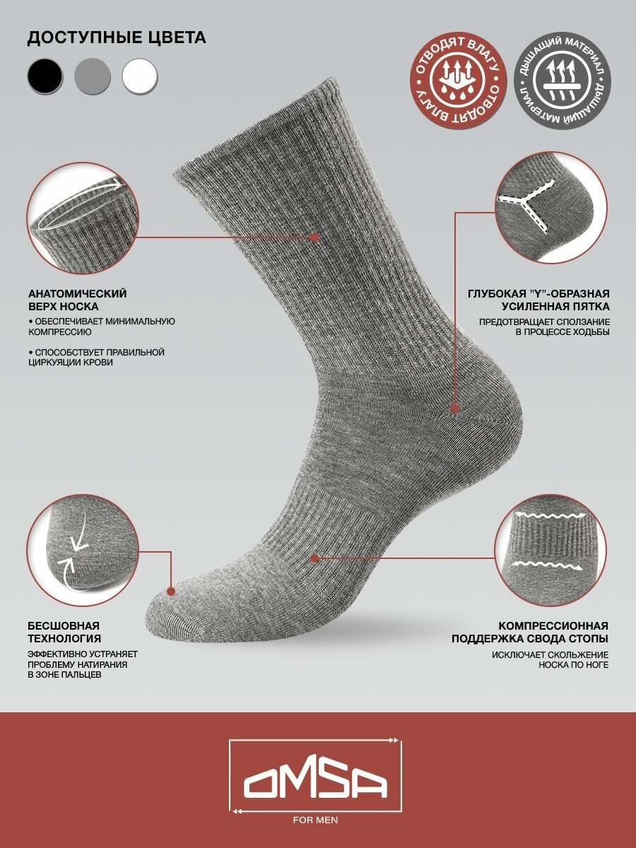Носки мужские OMSA ACTIVE 116 высокие с широкой резинкой Grigio Melange 39-41 (спайка 3 шт.) информация: