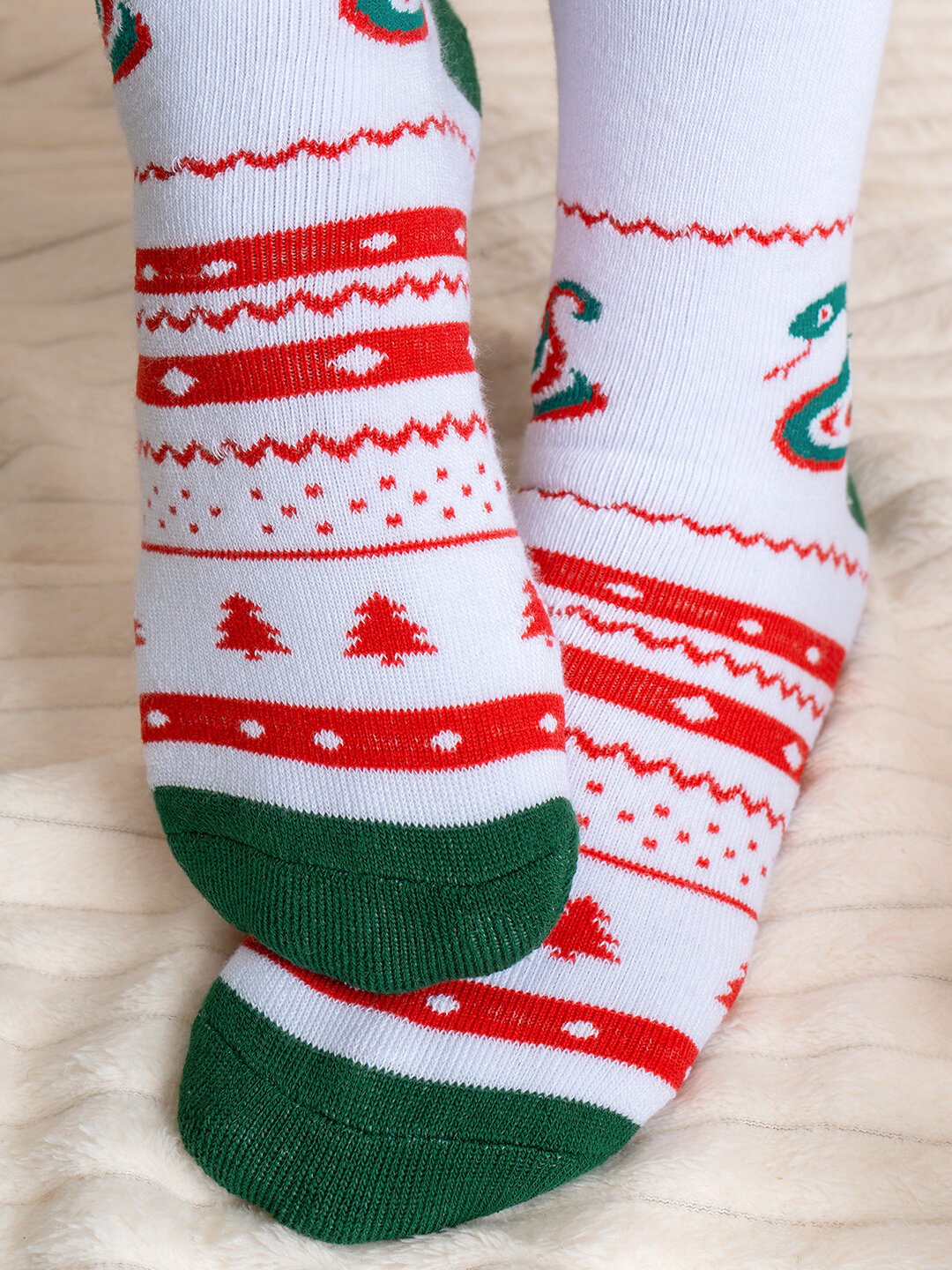 10 цен на Носки новогодние символ 2025 год Змеи теплые HappyFox HF3125A белый.зеленый 36-40