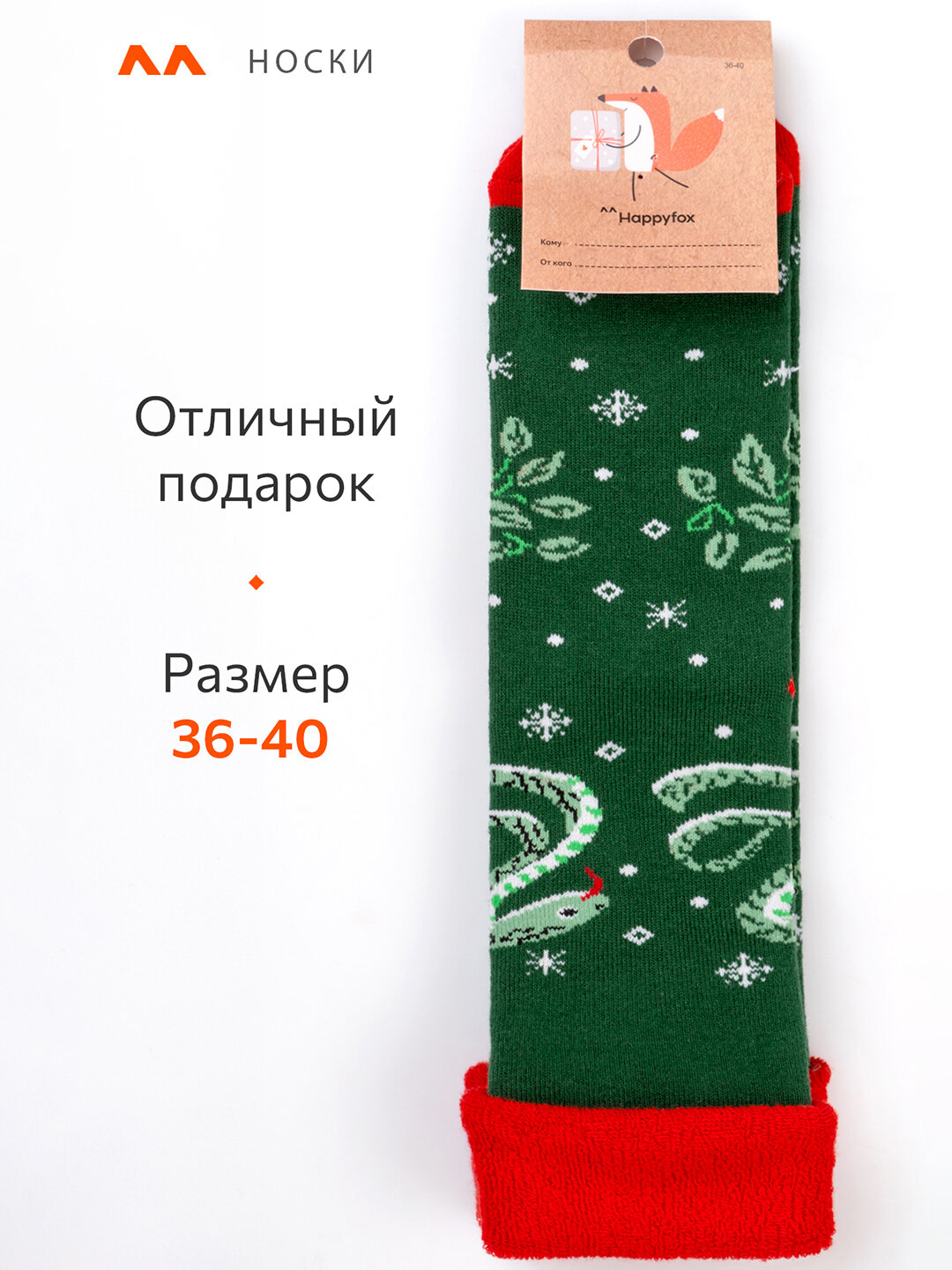 10 цен на Носки новогодние символ 2025 год Змеи теплые HappyFox HF3125A змея.зеленый 36-40
