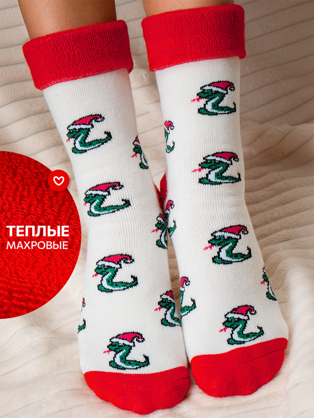 10 цен на Носки новогодние символ 2025 год Змеи теплые HappyFox HF3125A змейки.молочный 36-40