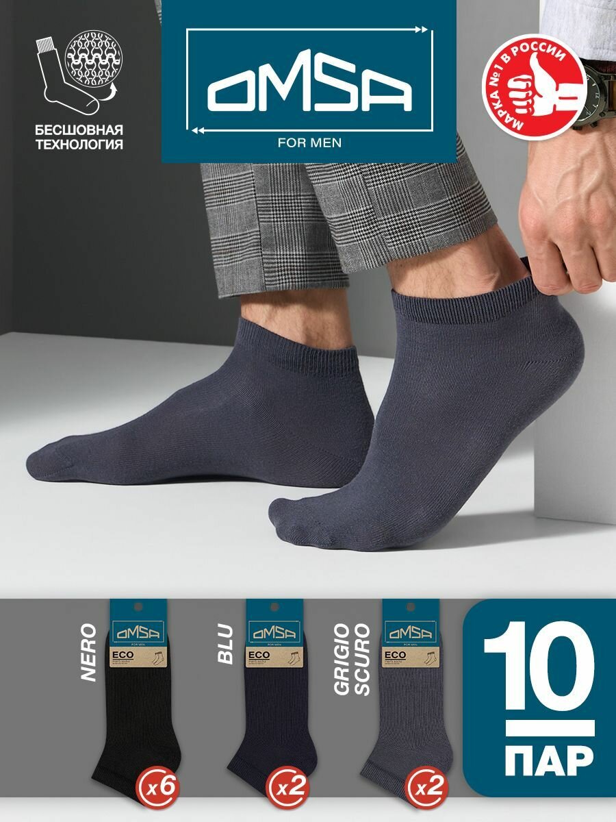 Носки мужские OMSA ECO 402, летние, комплект 10 шт, Цвет Nero/Grigio Scuro/Blu/, Размер 39-41 (25-27) информация: