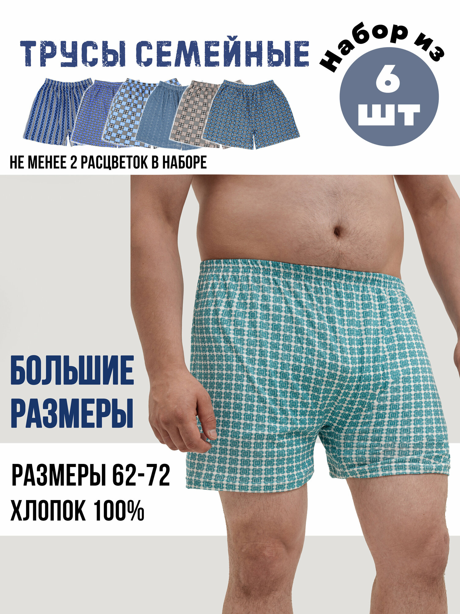 МШ-0003 Комплект мужских семейных трусов большого размера амтекс - 6 штук 62 Ассорти информация: