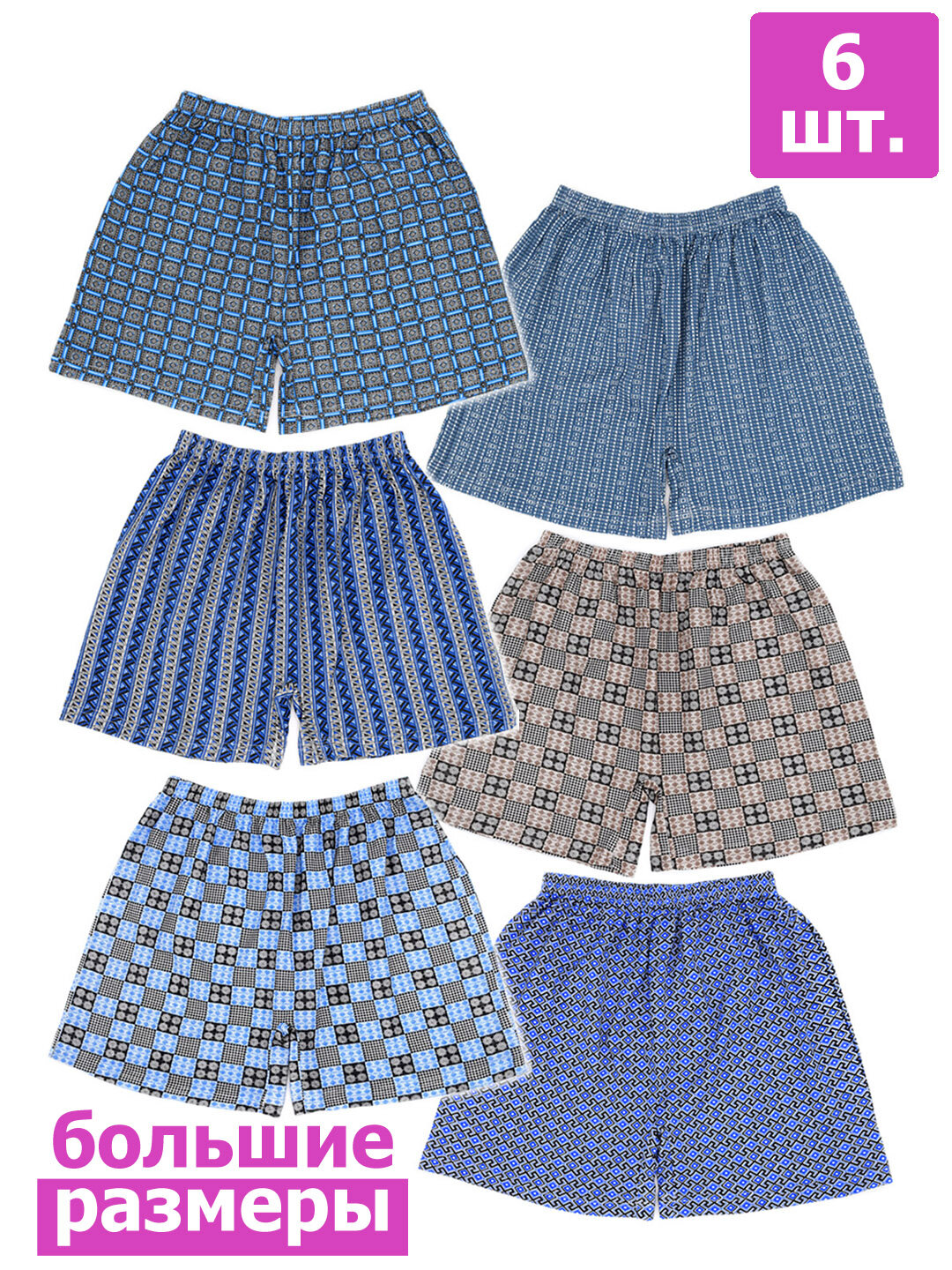 МШ-0003 Комплект мужских семейных трусов большого размера амтекс - 6 штук 64 Ассорти информация: