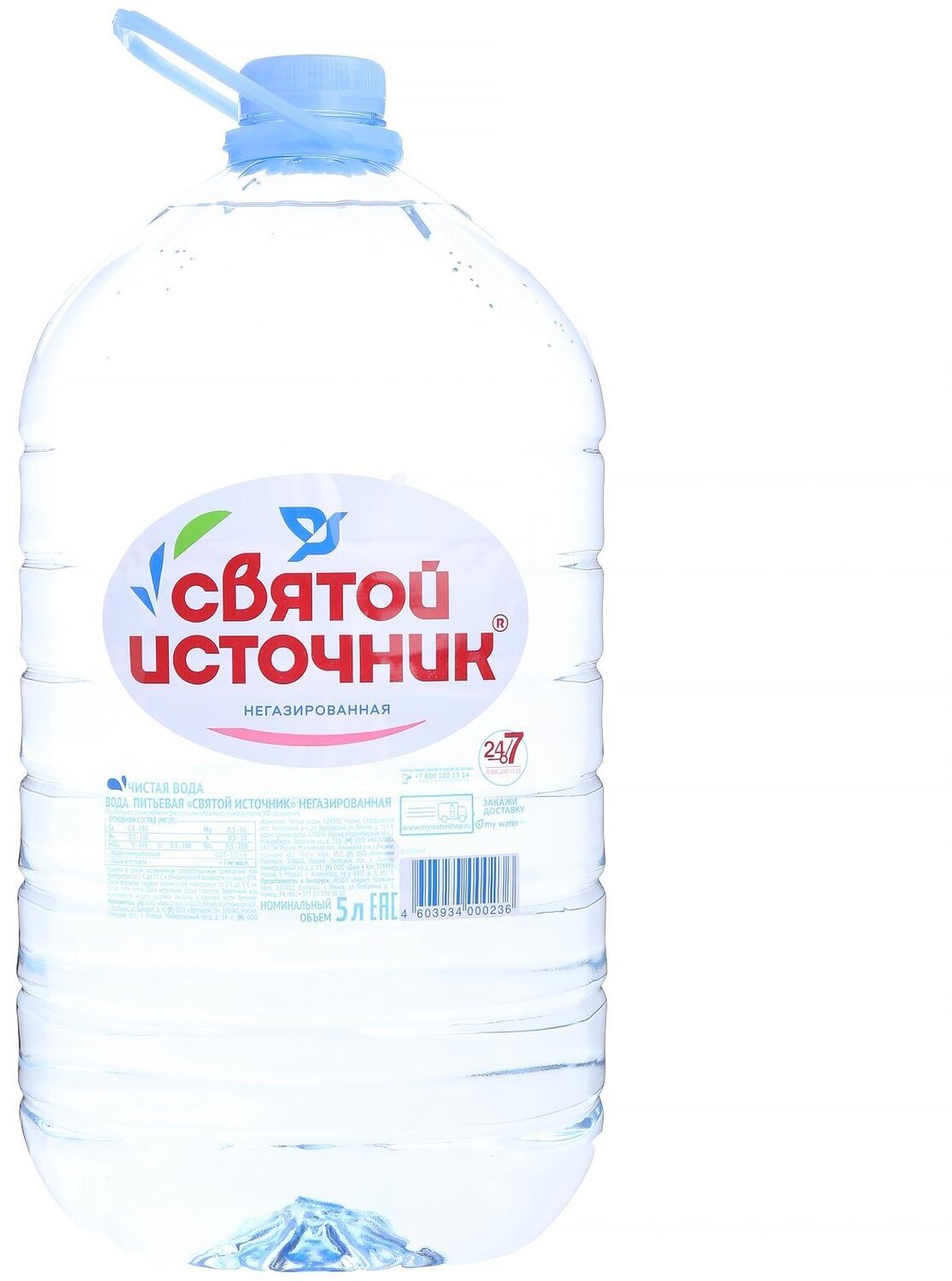 Вода негазированная питьевая "Святой источник", 5 л, пластиковая бутыль