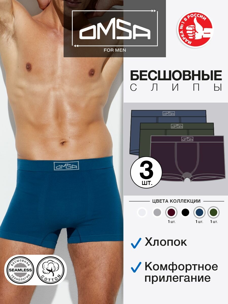 Трусы мужские OmU 2221S Боксеры бесшовные BluMilitariViola, размер 46(M)(3шт) информация: