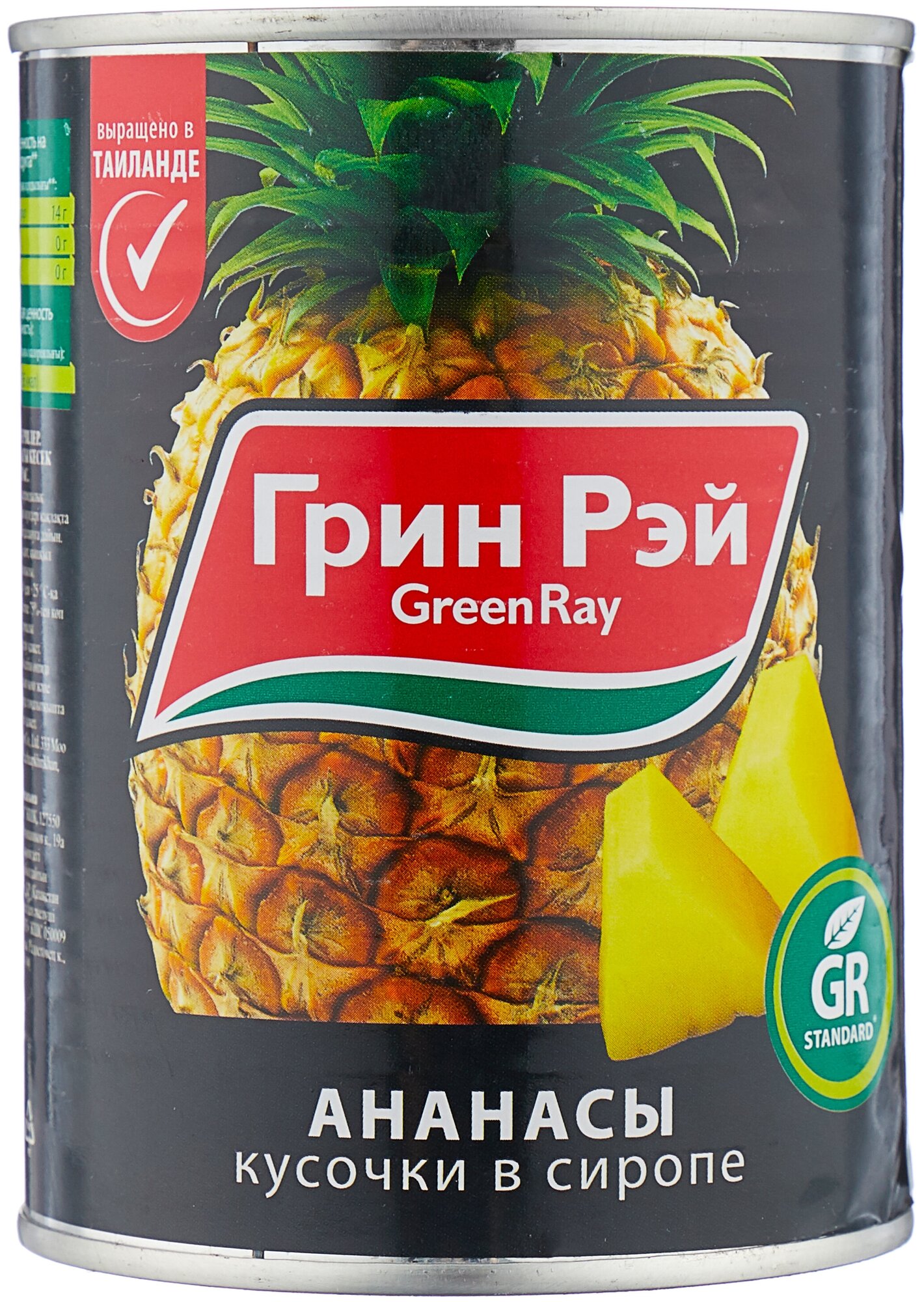 Консервированные ананасы Green Ray кусочками в сиропе, жестяная банка 580 мл
