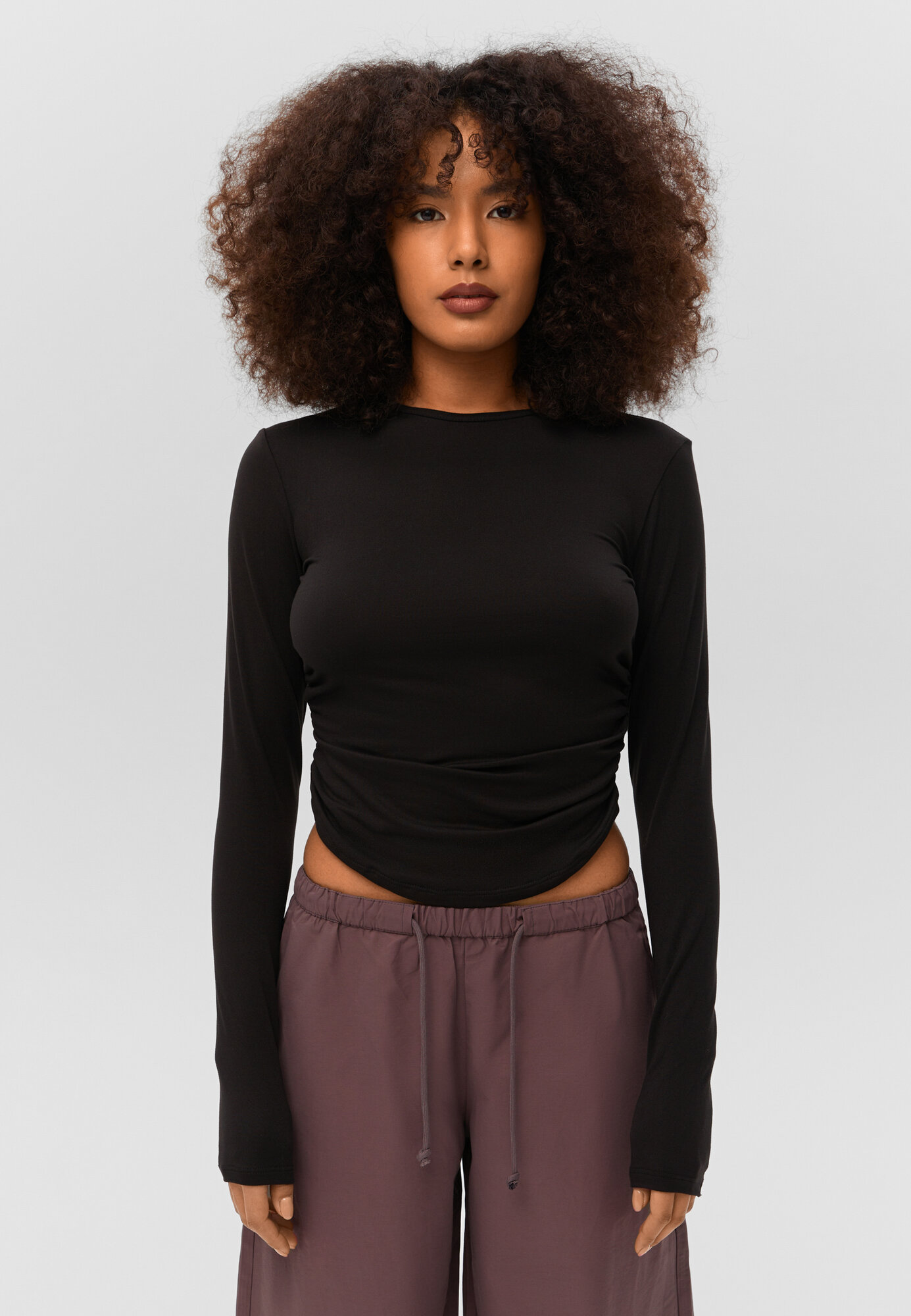 Топ Hide со сборками с длинным рукавом, цвет черный, размер XS информация: