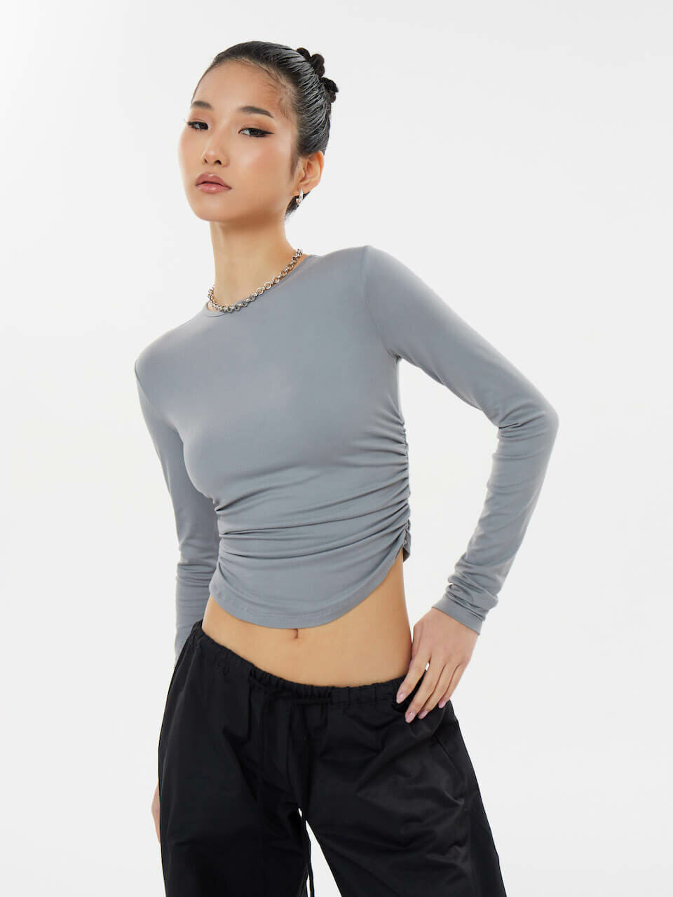 Топ Hide со сборками с длинным рукавом, цвет серый, размер M информация: