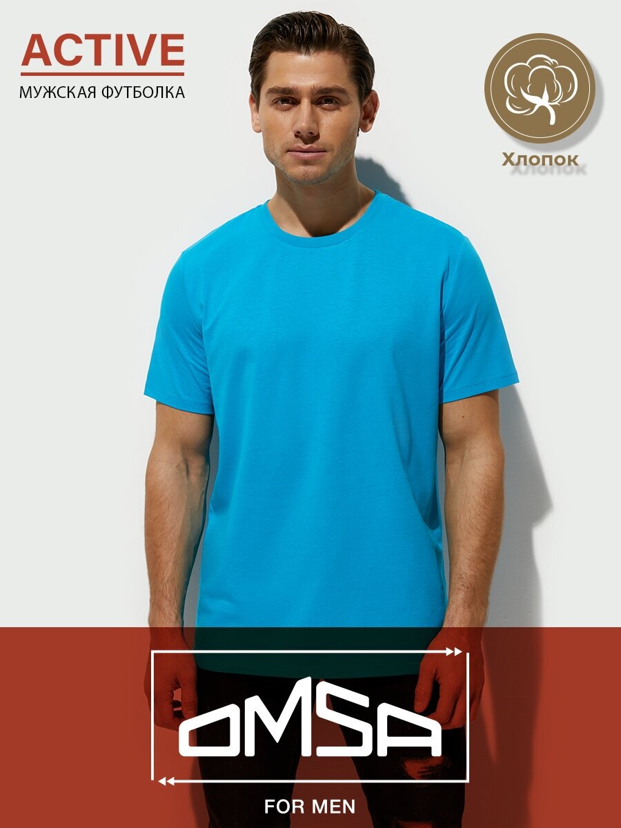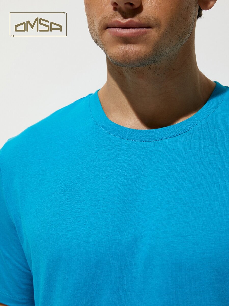 Футболка мужская Omsa OmT_U 1201 COTTON, хлопковая, спортивная, свободного кроя, цвет Turchese размер 46/M
