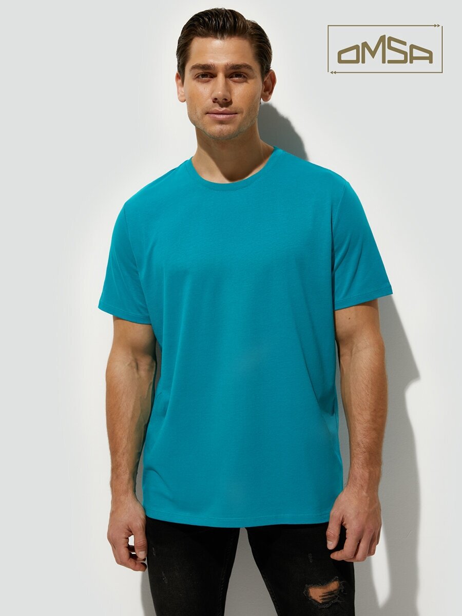 Футболка мужская Omsa OmT_U 1201 COTTON, хлопковая, спортивная, свободного кроя, цвет Turchese размер 46/M