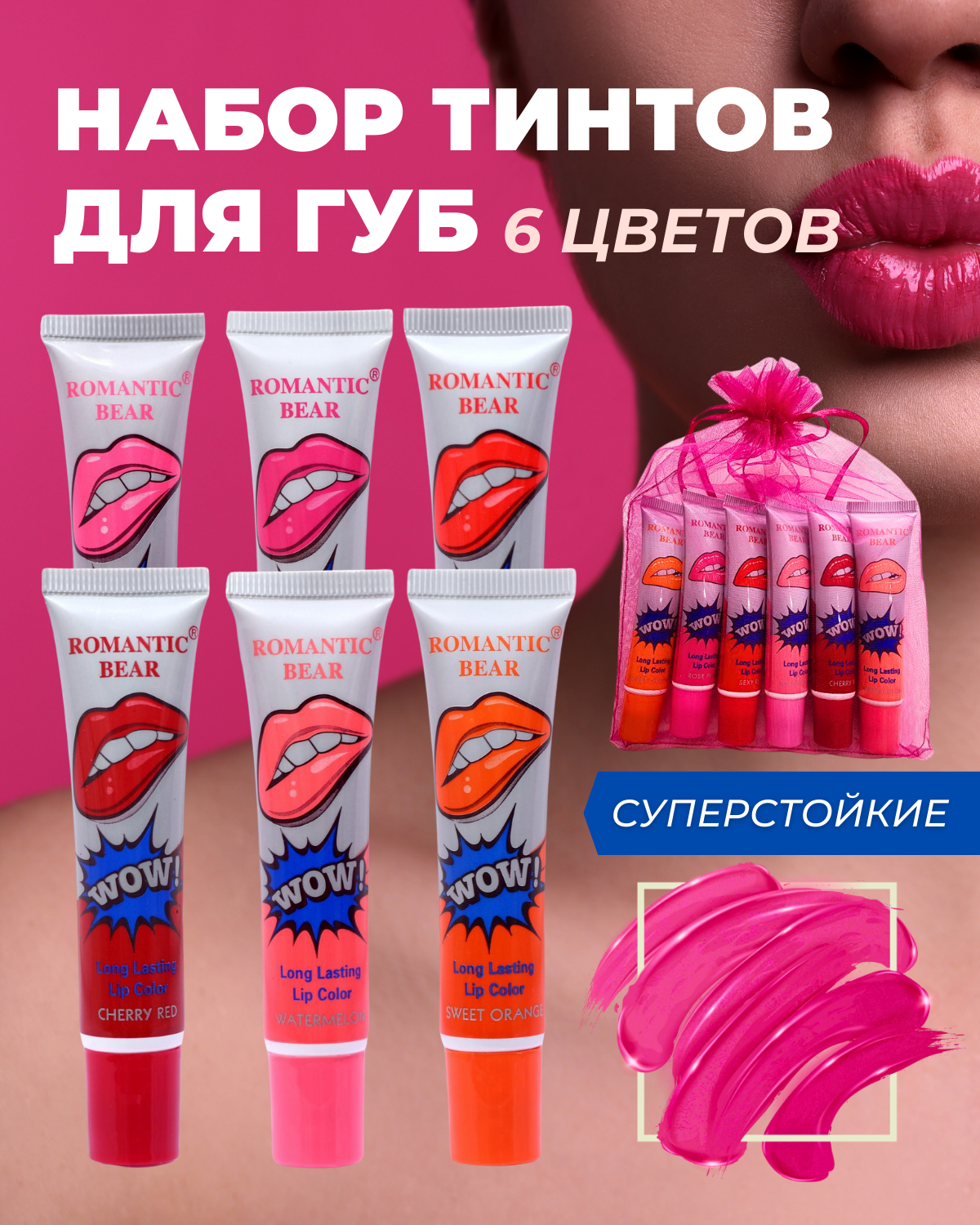 Тинты для губ набор 6шт стойкий жидкий информация: