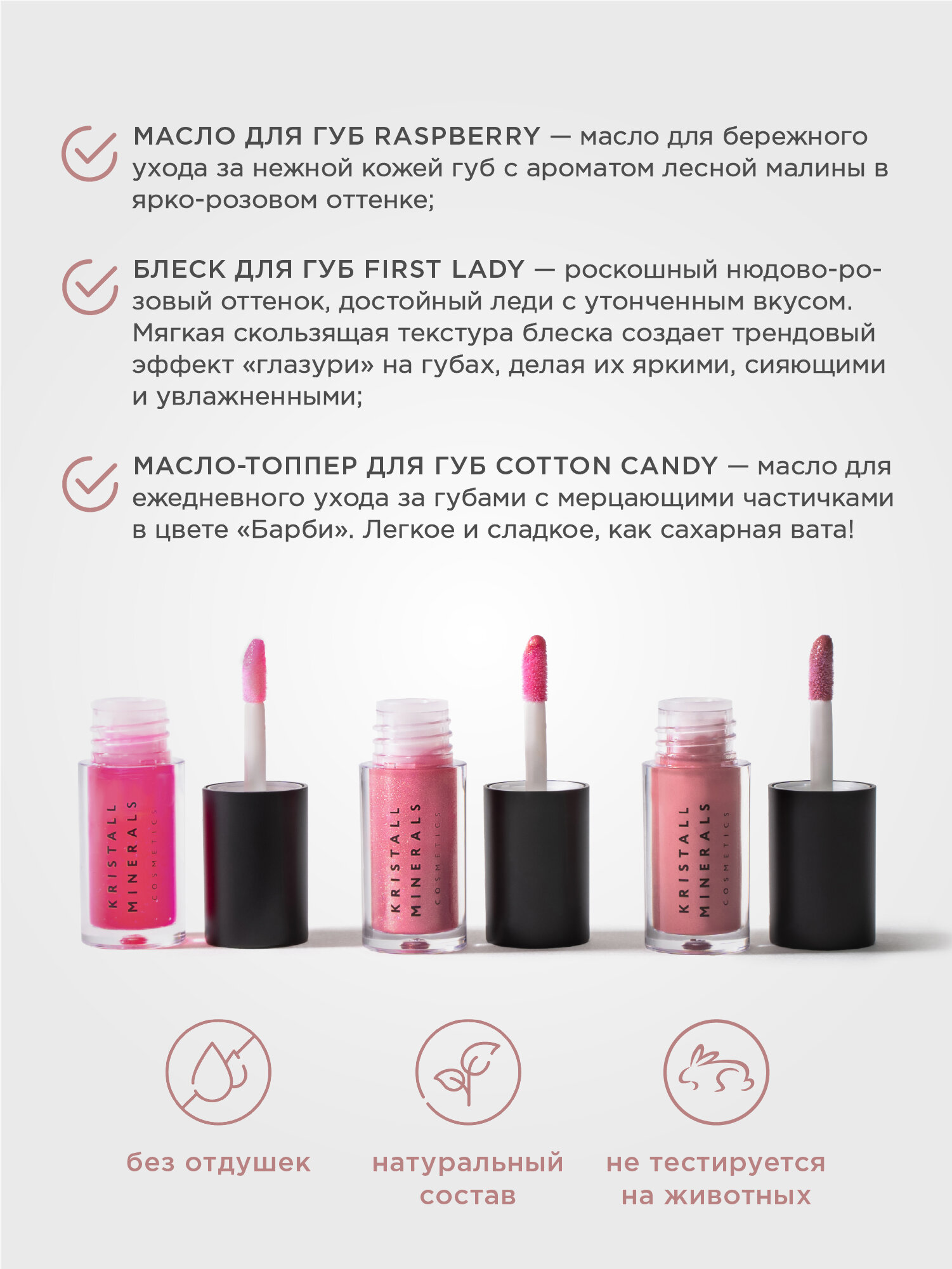 Набор миниатюр блесков для губ Beauty Present блеск/масло/топпер, Kristall Minerals cosmetics информация: