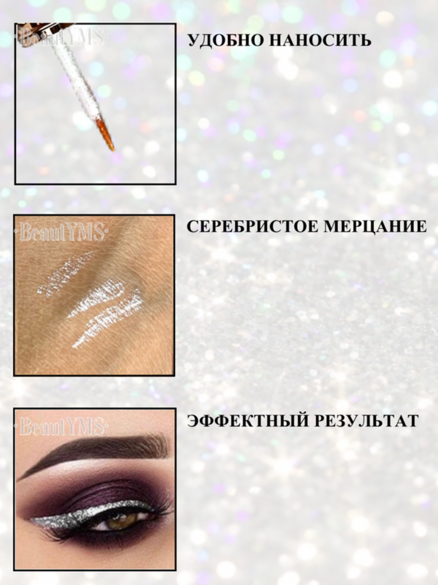 Отзывы на Подводка для глаз блестящая цветная глиттер с блестками Серебристая